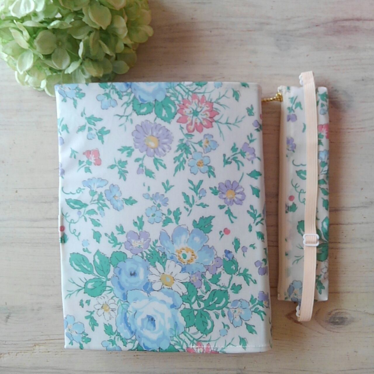 【販売終了】ローズエレン ライトブルー*リバティ手帳カバー・ぺンケースセット*ナカバヤシサイズ
