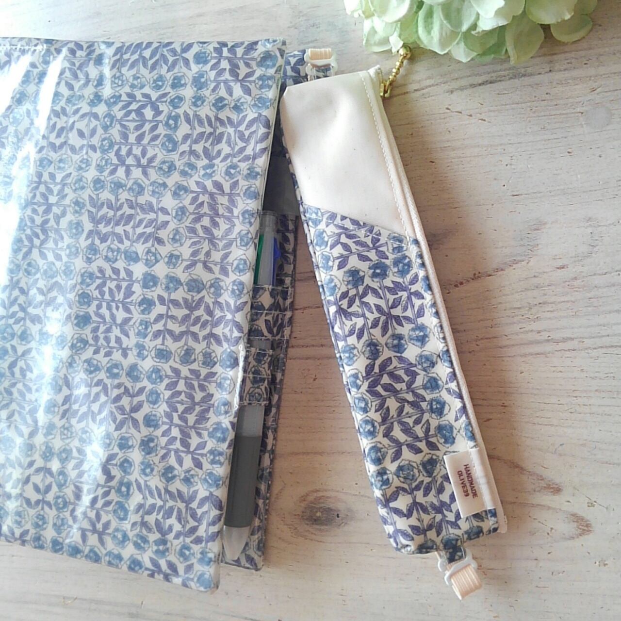 【販売終了】スリーピングローズ ブルー*リバティ手帳カバー・ぺンケースセット*ナカバヤシサイズ